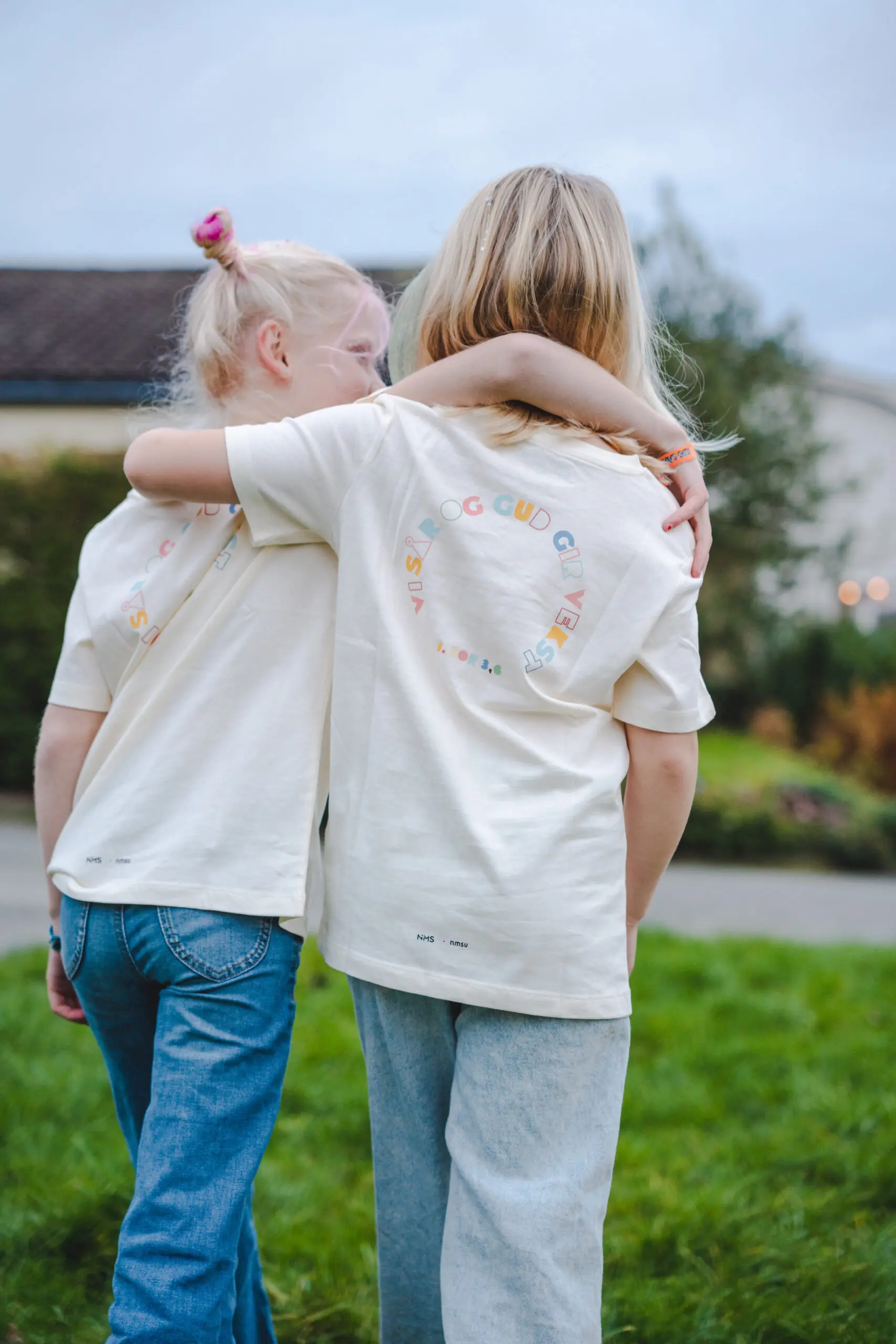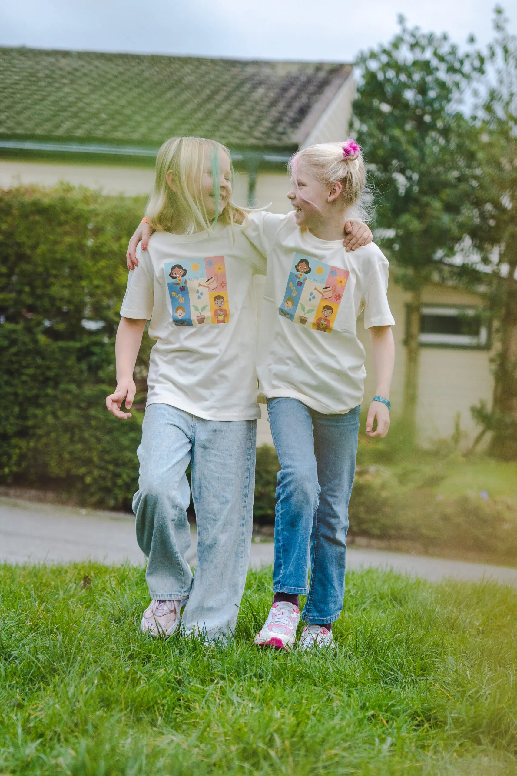 Lys t-skjorte til barn med lekent motiv på fremsiden og teksten «Vi sår og Gud gir vekst» på ryggen. T-skjorten er produsert av ChangeHub/Chosen. Den er etisk produsert og med 100% BCI (better cotton initiative) bomull. Passer både til gutt og jente.